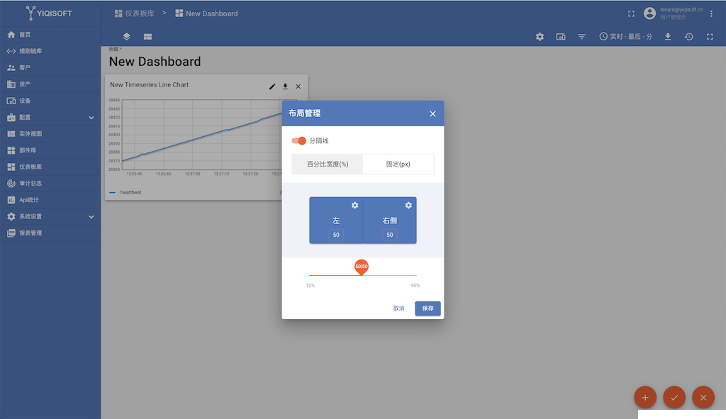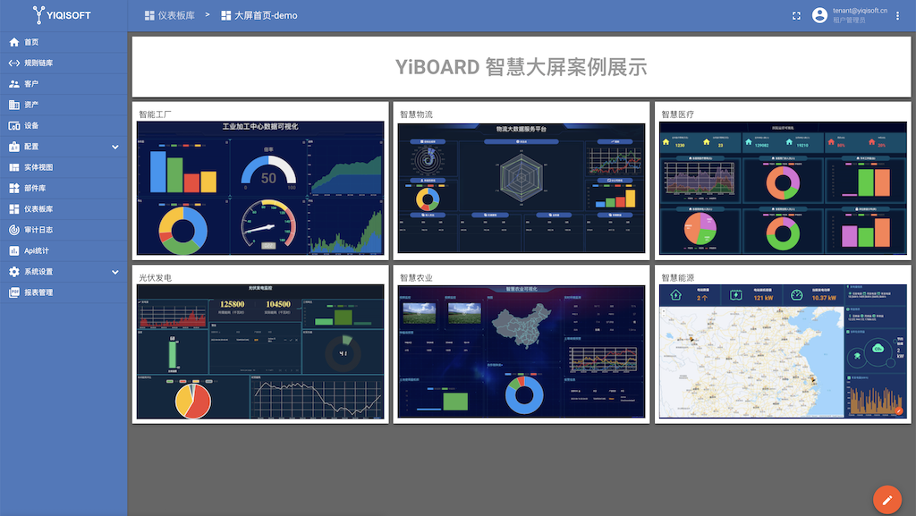 YiCONNECT 提供了一项强大的功能——创建和自定义交互式可视化效果(也称为仪表板)的能力。这些仪表板是有效监控和管理数据和设备的工具。借助 YiCONNECT 仪表板,用户可以根据自己的特定需求调整界面,从而比以往更轻松地检查其 IoT 设备和数据。出色之处在于每个仪表板都可以填充大量小部件,从而提供灵活性和定制性。这些仪表板不限于单个数据源;它们可以显示来自各种实体的数据,包括设备、资产等。此外,您可以将仪表板分配给特定客户,确保合适的个人或团队能够访问他们所需的数据。