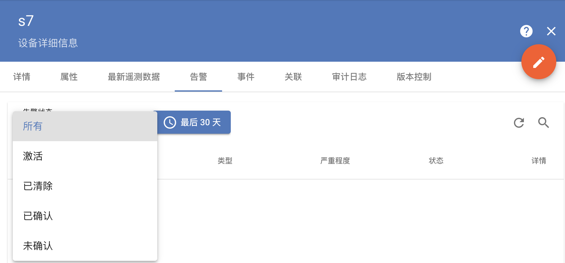 租户管理员和客户用户可以使用“事件”选项卡浏览与特定设备相关的事件。生命周期事件和统计数据即将推出。