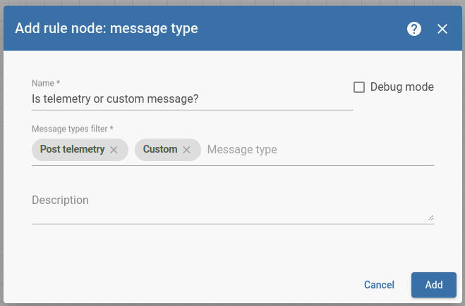 规则节点的输出连接对应于消息的类型。例如:“设备”、“资产”、“用户”等。